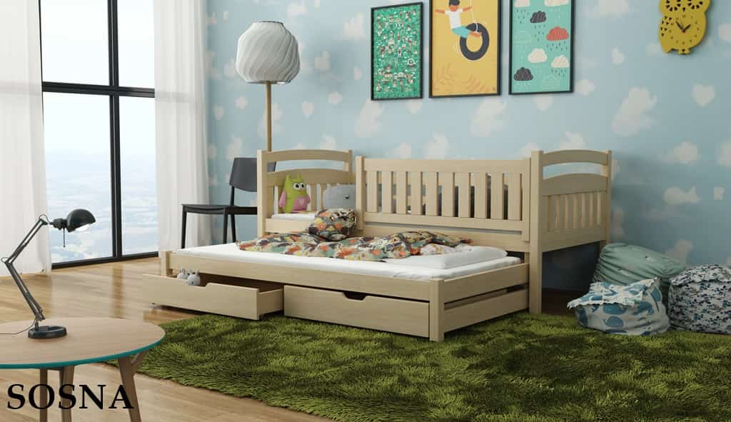 - Dřevěná postel GALAXY s úložným prostorem a výsuvným lůžkem 90x200cm