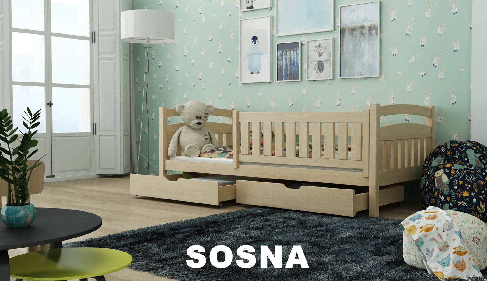 Postel z masivu borovice je vyrobena z materiálu o síle 2,6cm,což zajišťuje vysokou stabilitu a pevnost konstrukce. Vyrobeno z kvalitního dřeva první jakosti.