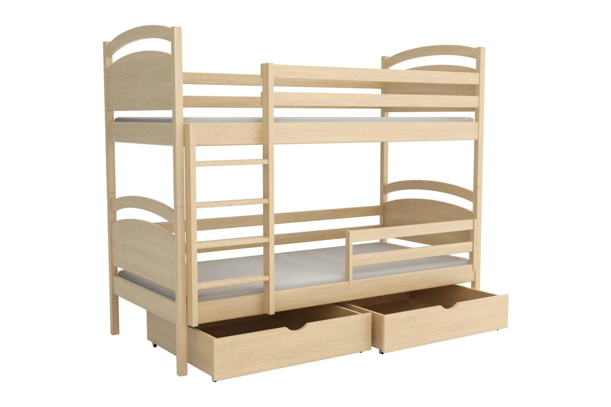 Dětská patrová postel je vyrobena ze 100% přírodního dřeva - masivní borovice o síle 2,6cm. K výrobě postelí je použitý prvotřídní materiál a pro povrchovou úpravu ekologický bezbarvý lak v trojité vrstvě.