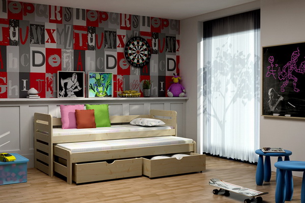 - Postel VILD 011 s výsuvným lůžkem borovice masiv 90x190 cm