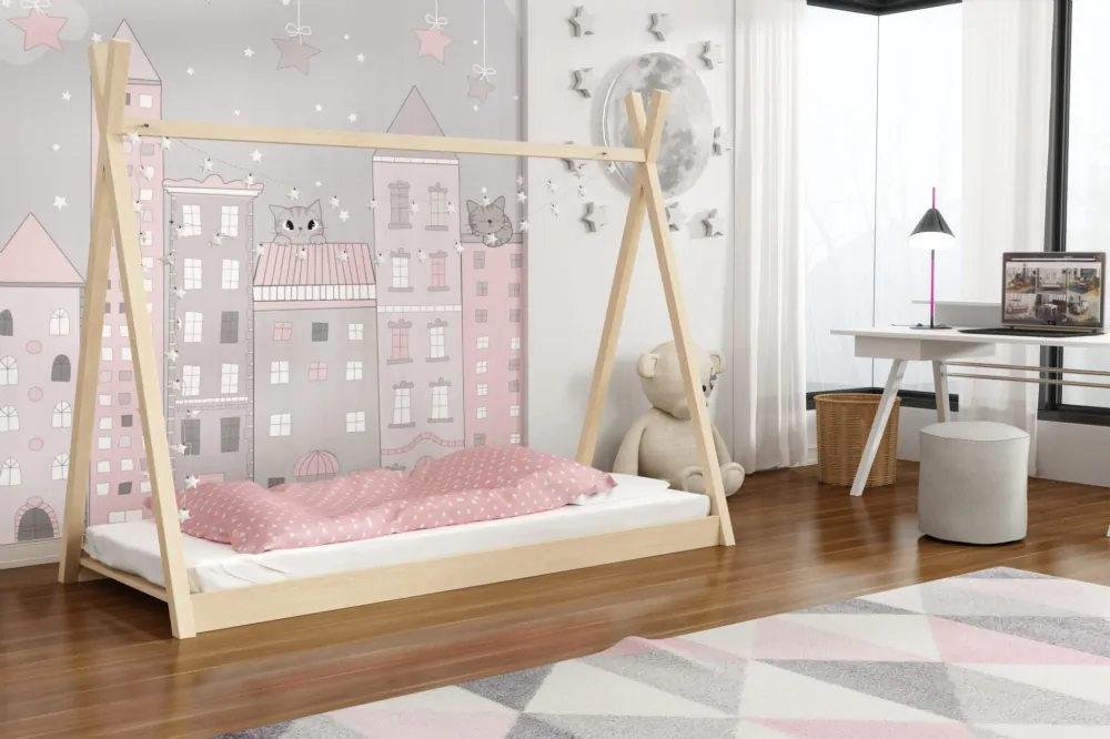 - Dřevěná postel DOMEK 05 80x200 cm borovice masiv - více odstínů