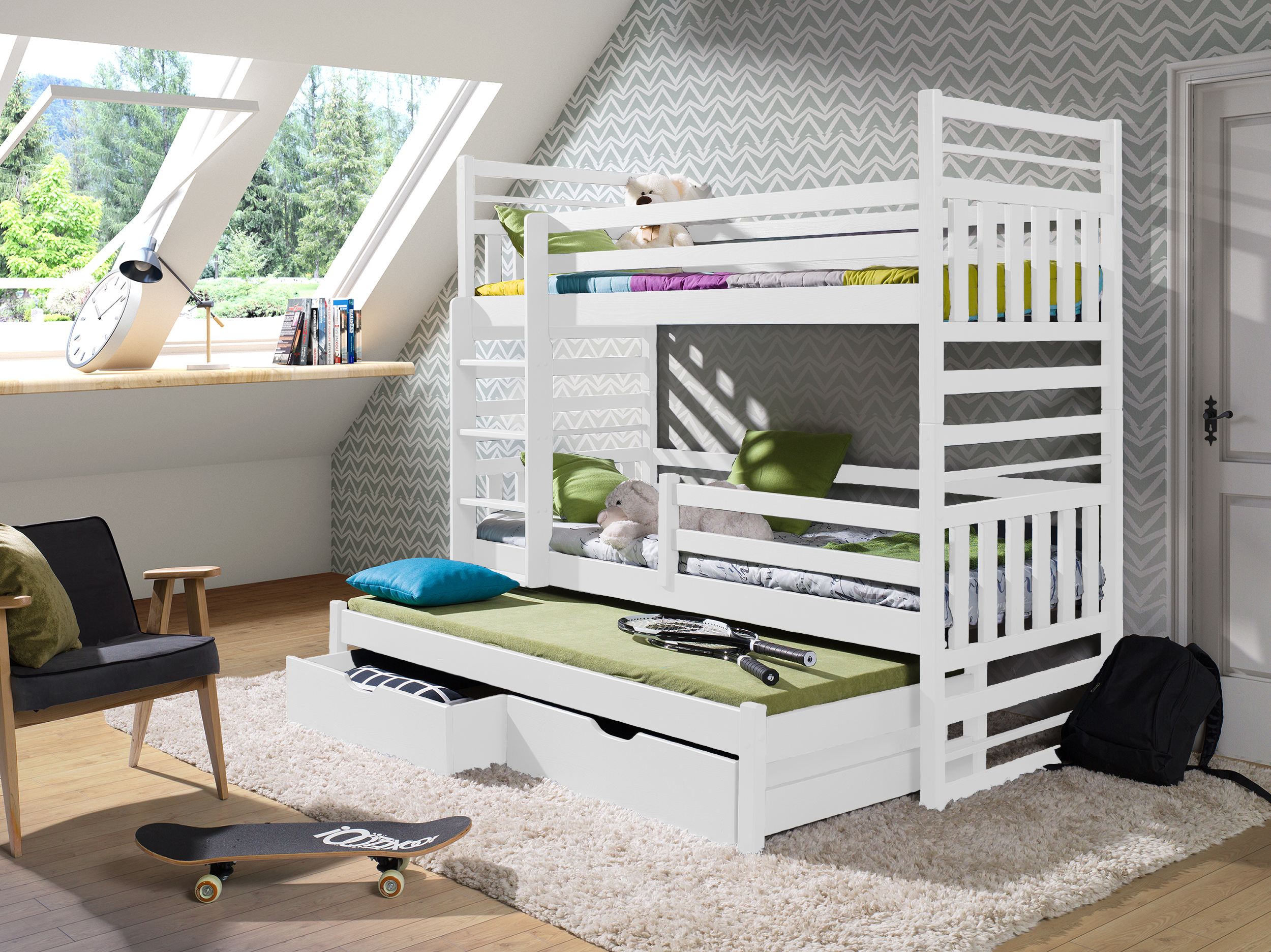 Patrová postel Hipolit 3 s úložným prostorem borovice masiv