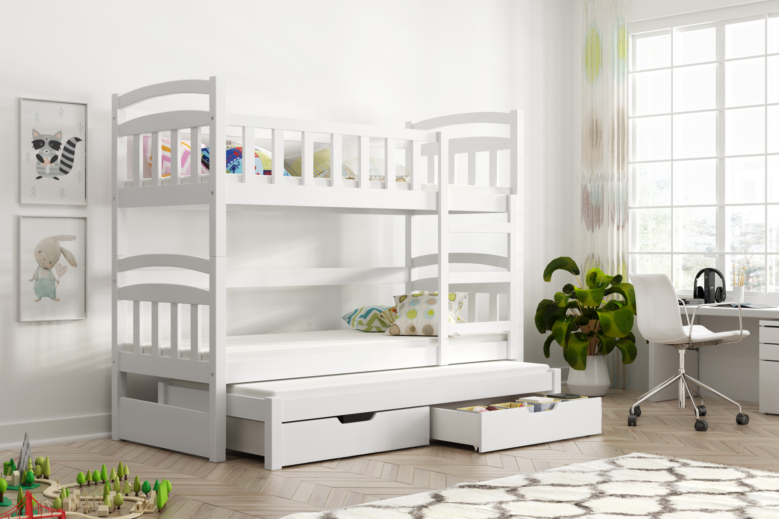 Patrová postel K - DAMIAN s přistýlkou a úlož.prostorem