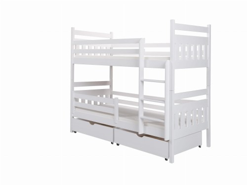 Dvoupatrová postel FILIP je celá vyrobena z masivního borovicového dřeva, třikrát lakovaná ekologickými barvami.