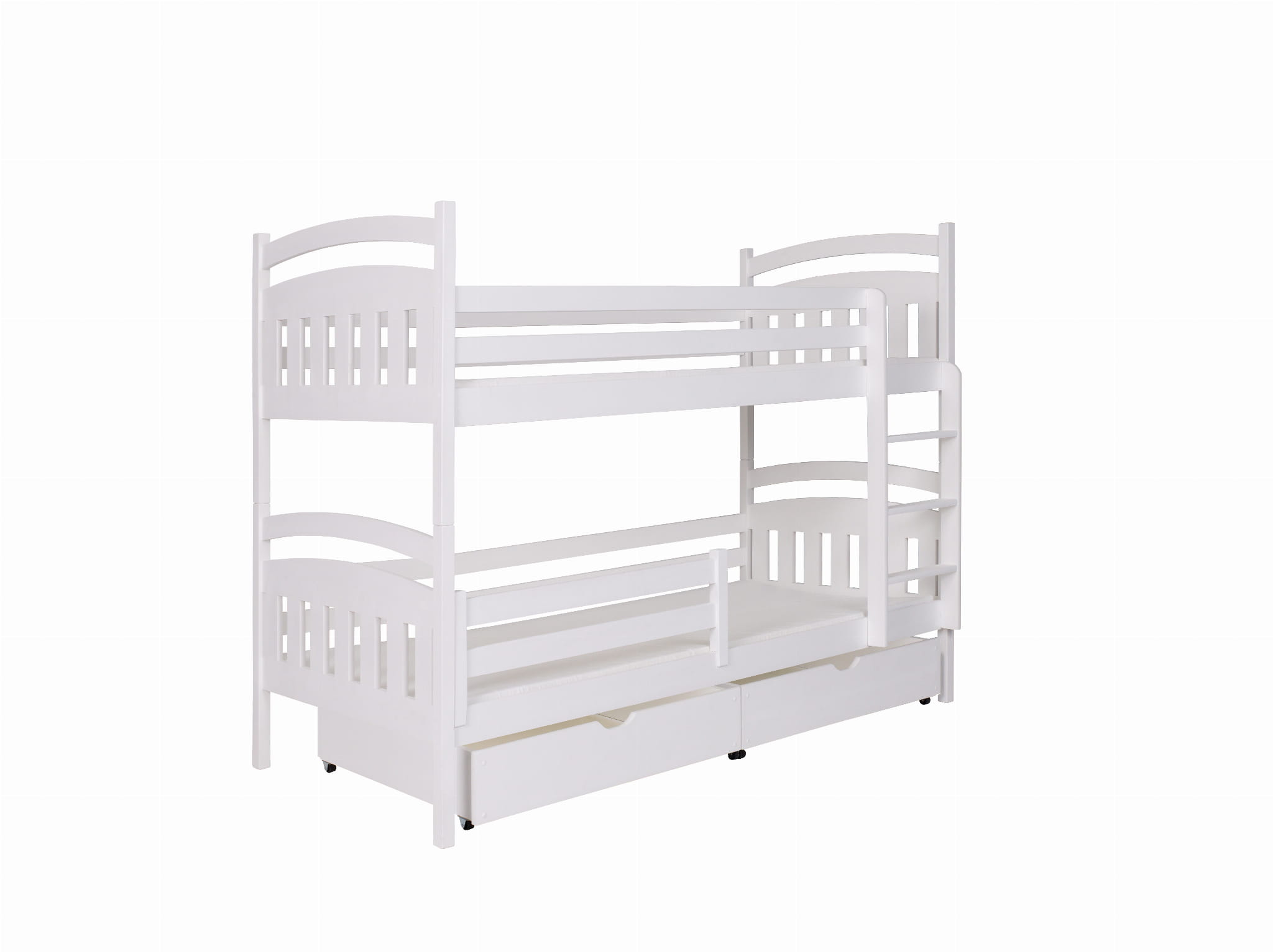 Dvoupatrová postel DENIS je celá vyrobena z masivního borovicového dřeva, třikrát lakovaná ekologickými barvami.