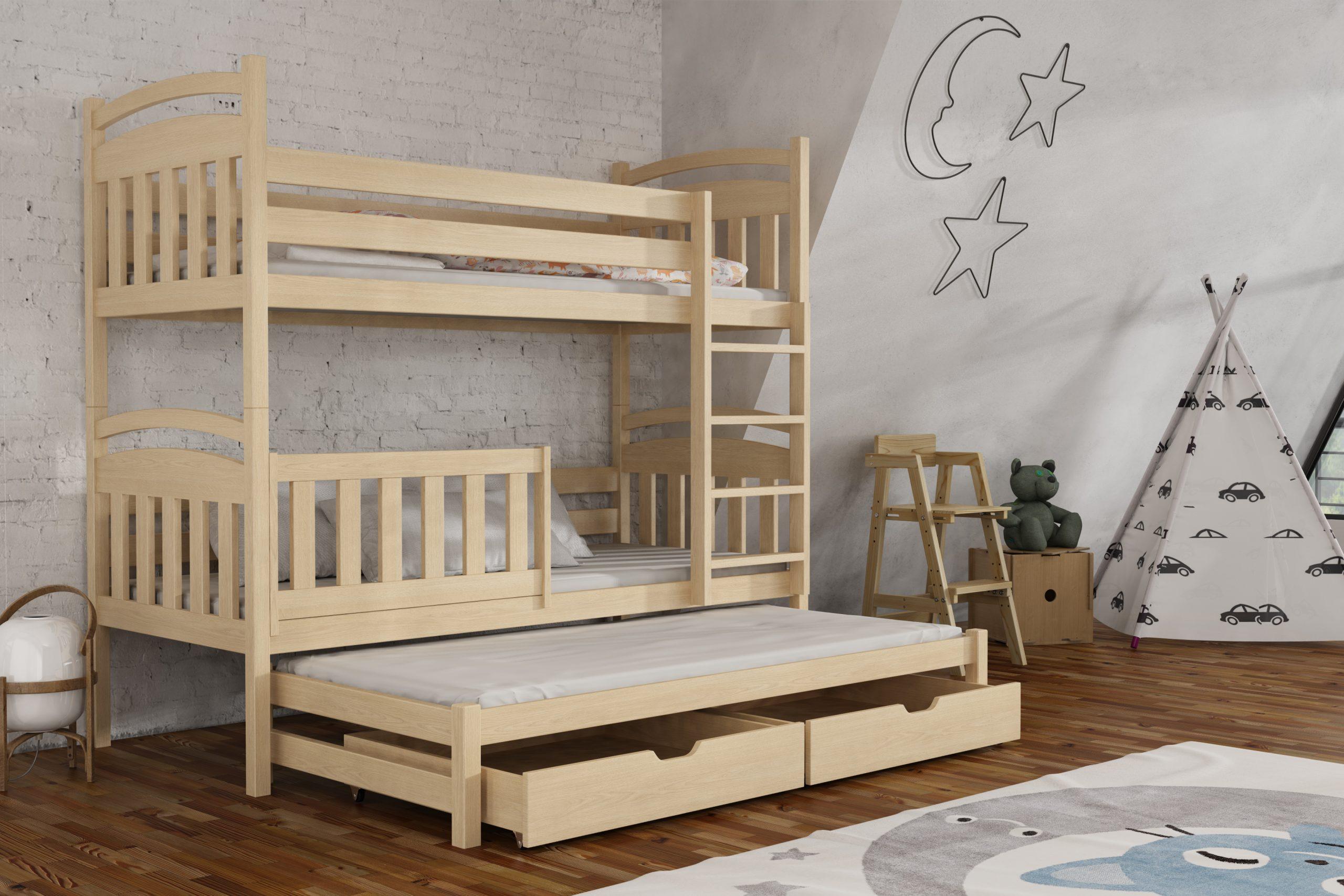 - Patrová postel s výsuvným lůžkem KONRAD 01 80x180 cm borovice masiv s úložným prostorem