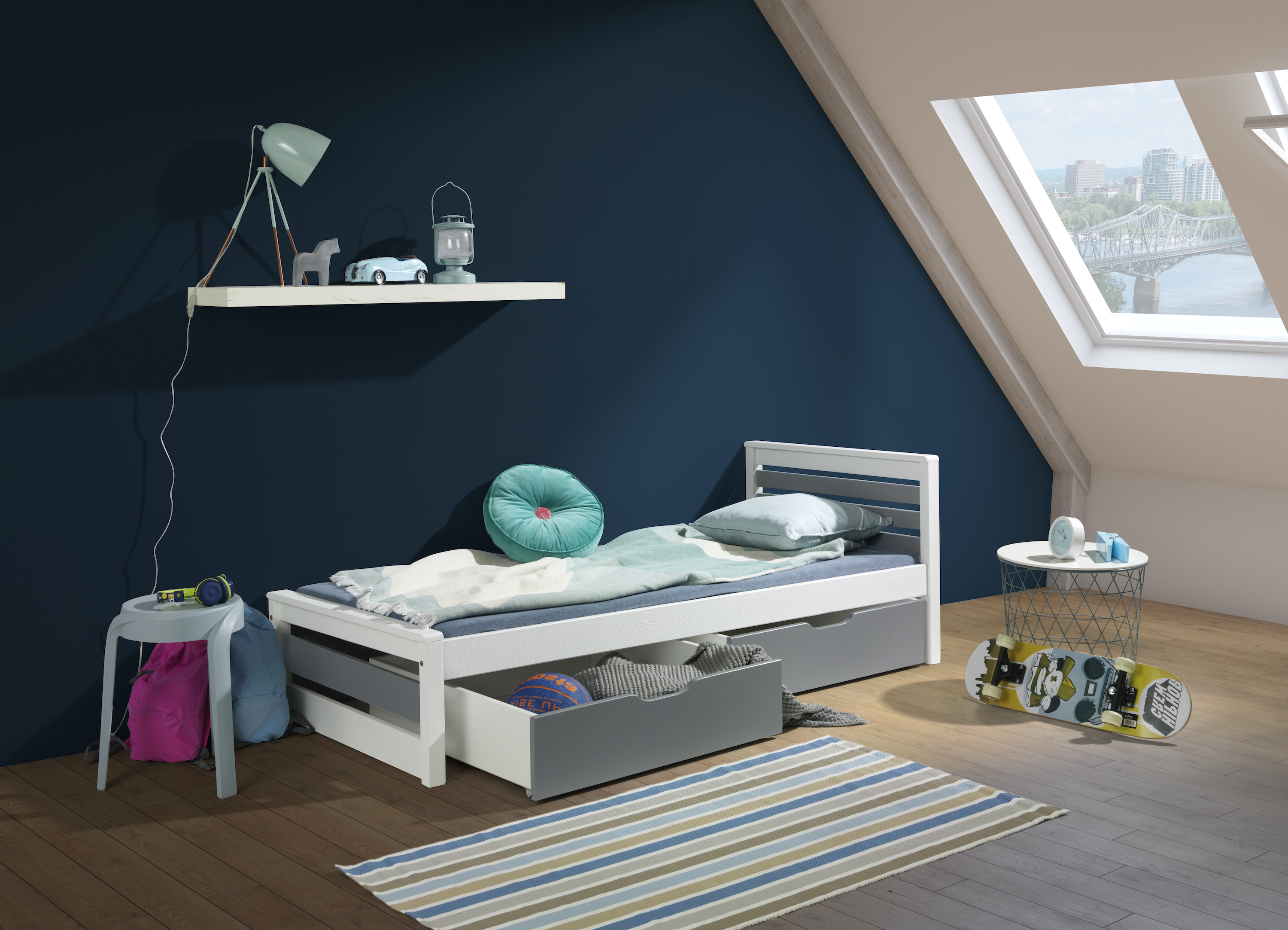Postel Kama s úložným prostorem borovice masiv