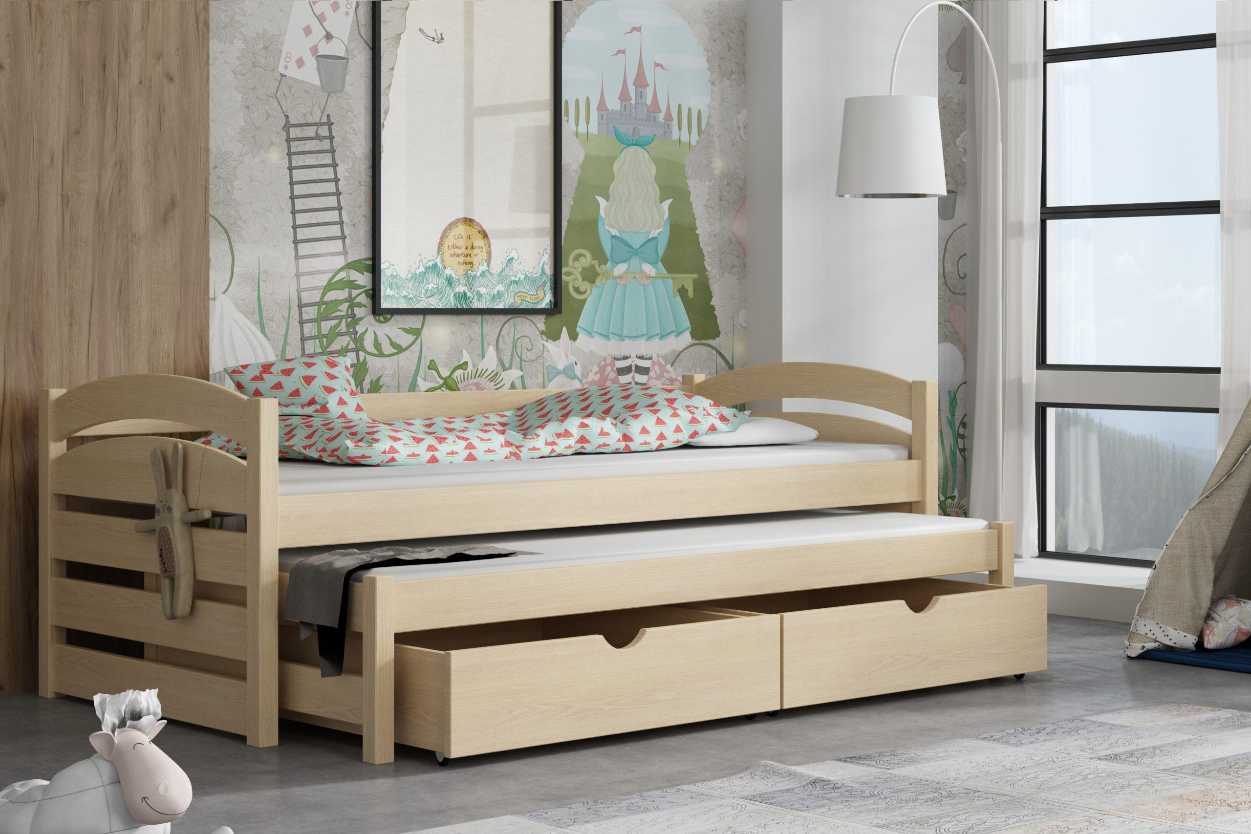 Postel s výsuvnou přistýlkou MONIKA 12 90x200 cm borovice masiv s úložným prostorem